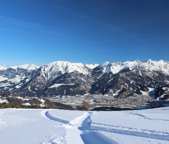 Auf diesem Winterwanderweg vom Hochplateau Tschengla über die Burtscha Alpe hinauf zum Burtschasattel wirst Du mit atemberaubenden Blicken auf die Zimba und die Alpenstadt Bludenz belohnt!