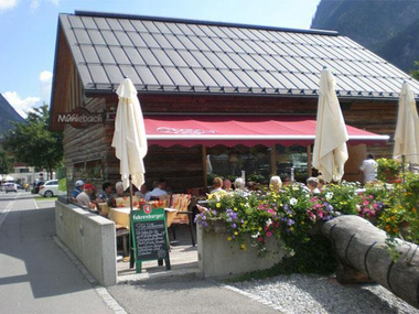 Mühlebach ist das In-Lokal im Brandertal! Für die gemütliche Einkehr, mit idyllischer Sonnenterrasse bei der "alta Säga".