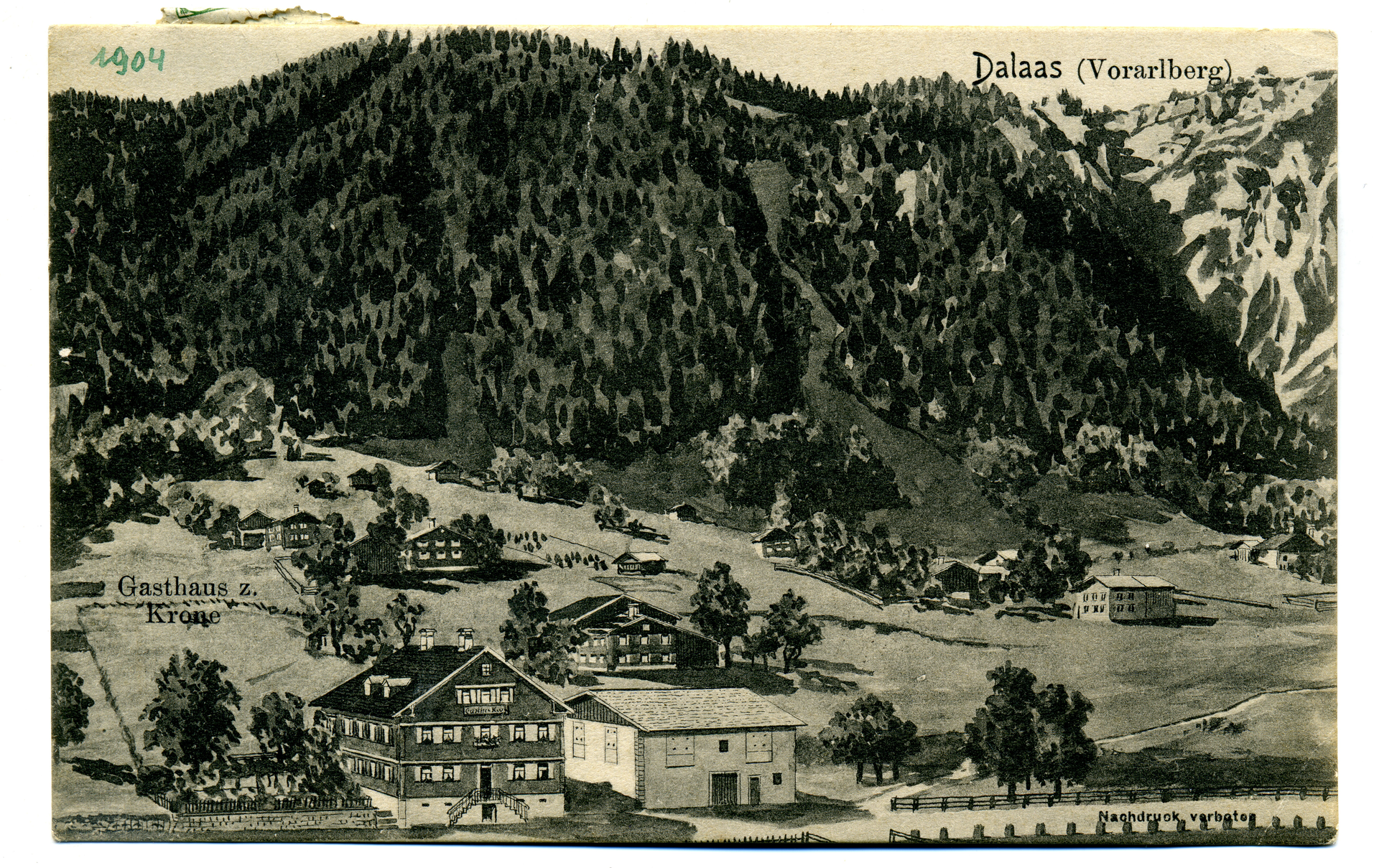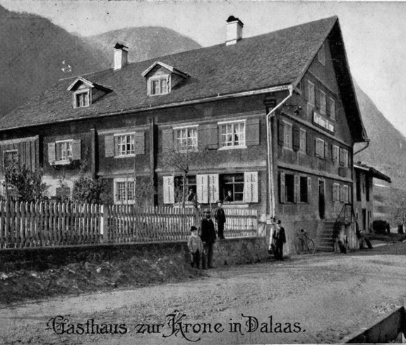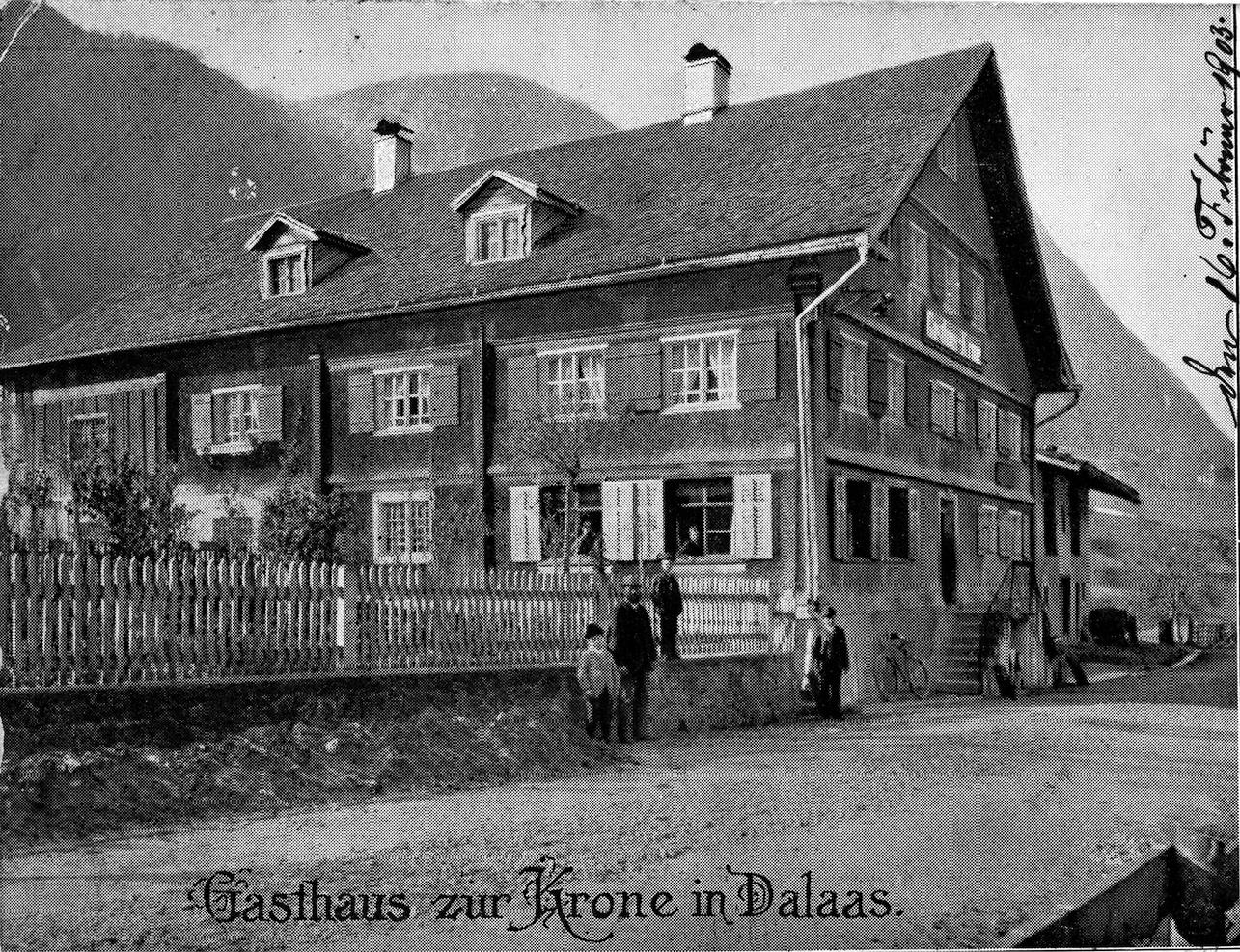 Glaubt man der mündlichen Überlieferung im Ort, waren im großen Gebäude des Gasthofs Krone einst zwei Gastwirtschaften untergebracht. Der Gastbetrieb ist mehr als 200 Jahre alt, er wird schon um 1800 in verschiedenen Quellen erwähnt. Dazu zählte einstmals auch eine bedeutende Landwirtschaft. Die „Kronenbündten“ umfassten große Flächen zu beiden Seiten der Straße. Neben dem Gasthof Post war die Krone lange Zeit ein wichtiger gesellschaftlicher Treffpunkt, nicht zuletzt für die Dalaaser Vereine. Hier fanden beispielsweise in der Zwischenkriegszeit auch Theaterveranstaltungen statt.