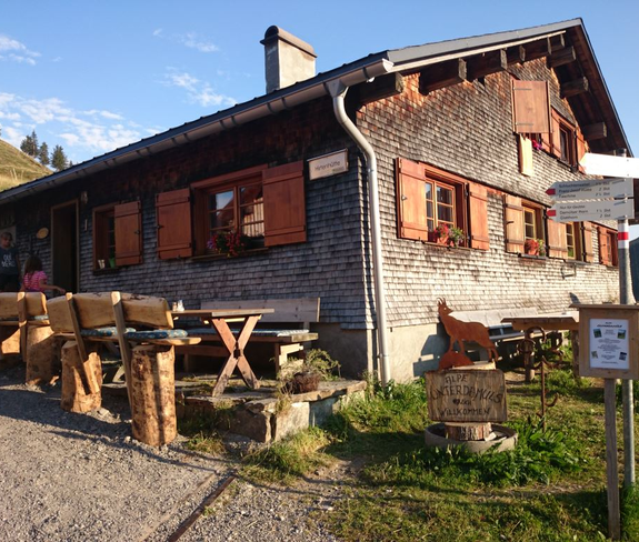 Weiter geht es zur Alpe Unterdamüls, wo eine Pause in einer gemütlichen Almhütte möglich ist.
