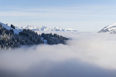 Ganz egal, ob zu Fuß oder mit Schneeschuhen: Auf vielen Wanderwegen kann man den Winter im UNESCO Biosphärenpark Großes Walsertal erleben. Von sanften Wegen im Tal bis zu alpinen Höhen erstreckt sich die Auswahl, von gemütlich flachen Strecken bis zu herausfordernden Pfaden, die mehrere Stunden in Anspruch nehmen können. Die klare Bergluft, die leichte Anstrengung und die Stille des Winters tun jedenfalls gut. Und zwar dem Körper und dem Geist.